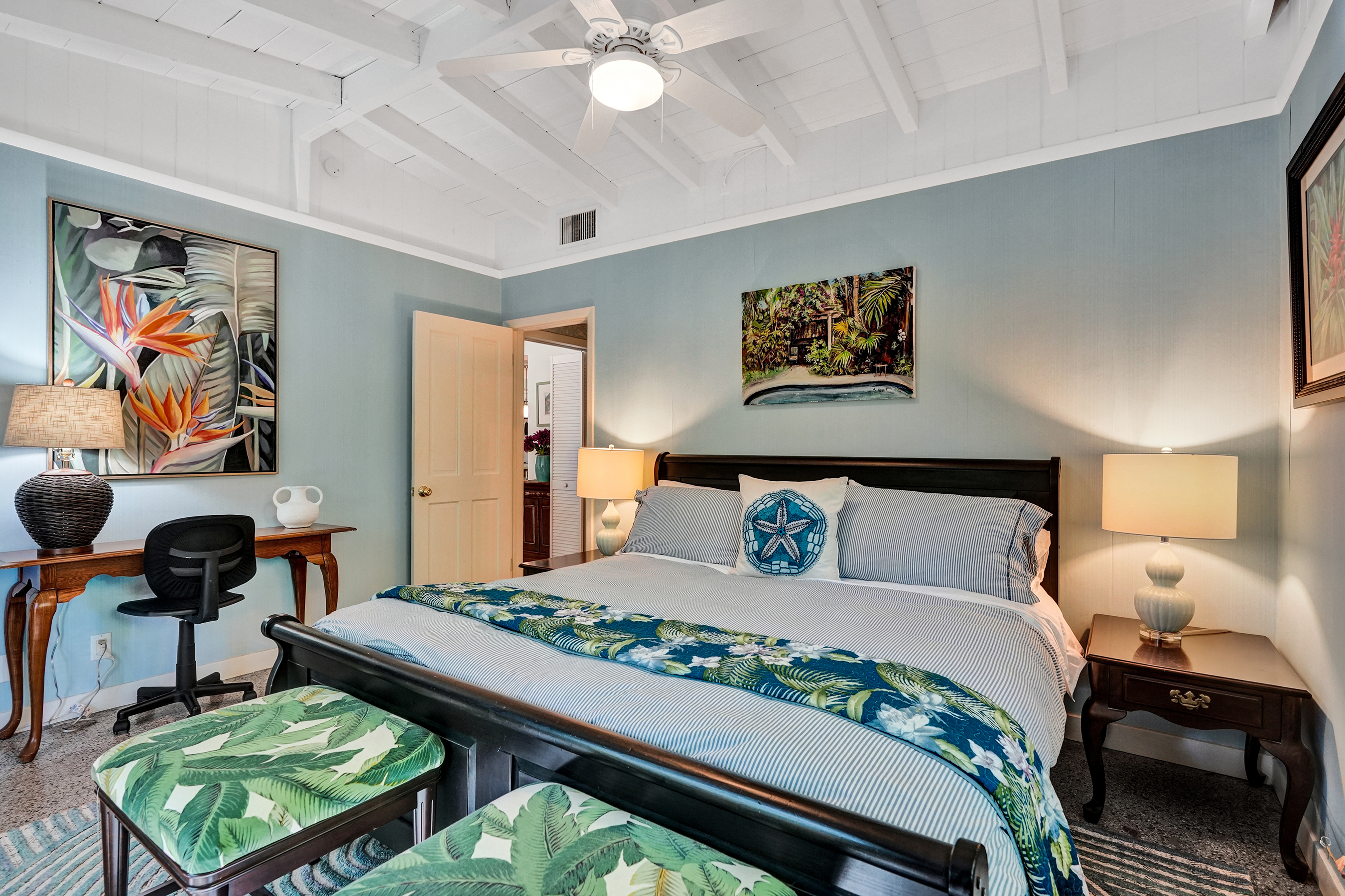 The master bedroom suite offers a very comfortable king bed, *Smart TV, and private bathroom. A second large bedroom also offers a king bed and a Smart TV. There are two twin beds located in a 3rd bedroom, featuring an ensuite bathroom. The fourth bedroom has a queen bed and large closets for storage. All bedrooms are bright, airy, and equipped with plush linens and ceiling fans for your absolute comfort.