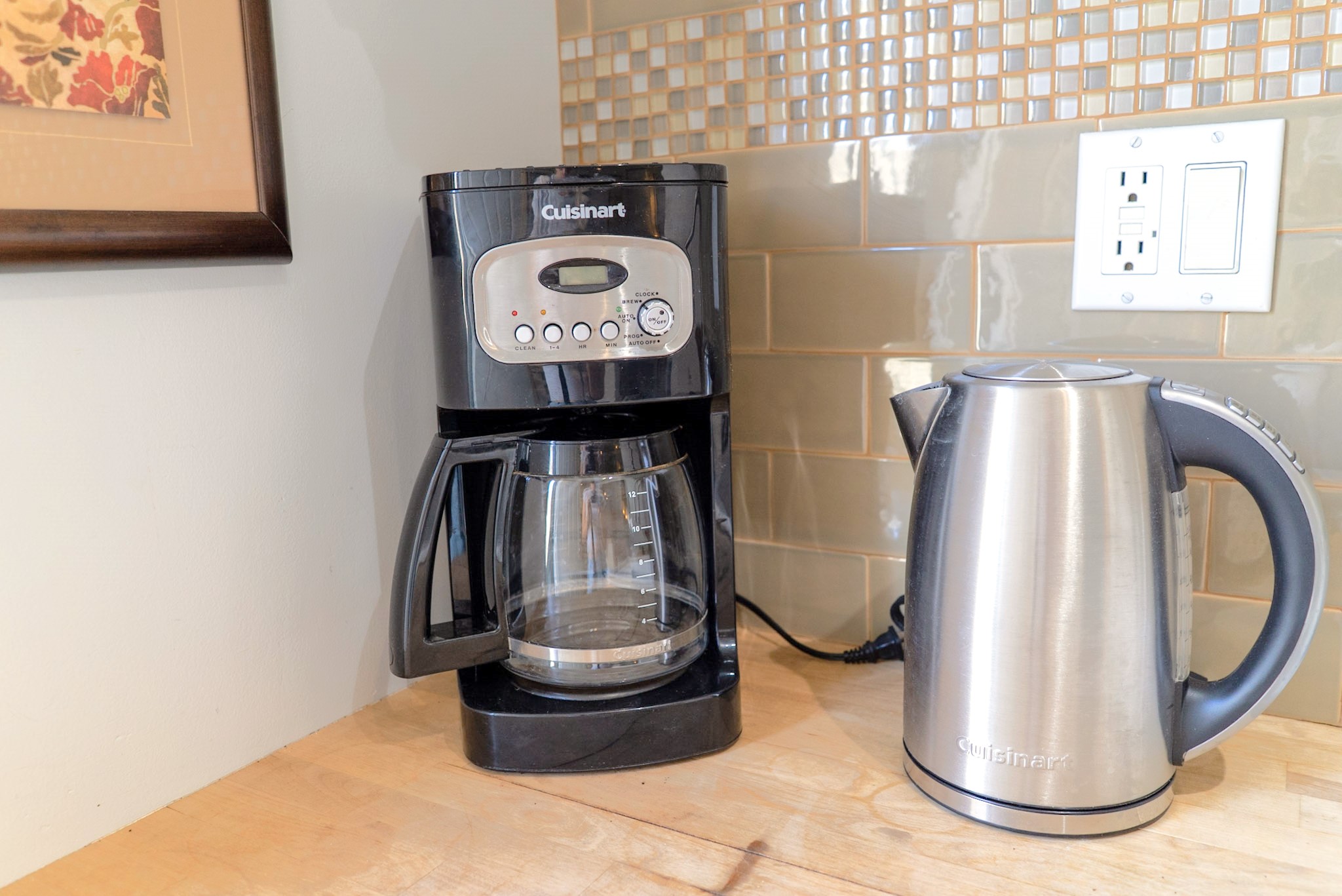 KITCHEN & DINING: The kitchen is equipped with a full stove/oven, microwave, dishwasher, and all your cookware. There is a traditional drip-style coffee pot and toaster. Additionally, all your cutlery and tableware are stocked. Basic spices (sugar, salt, pepper, olive oil) are also provided for your cooking needs.