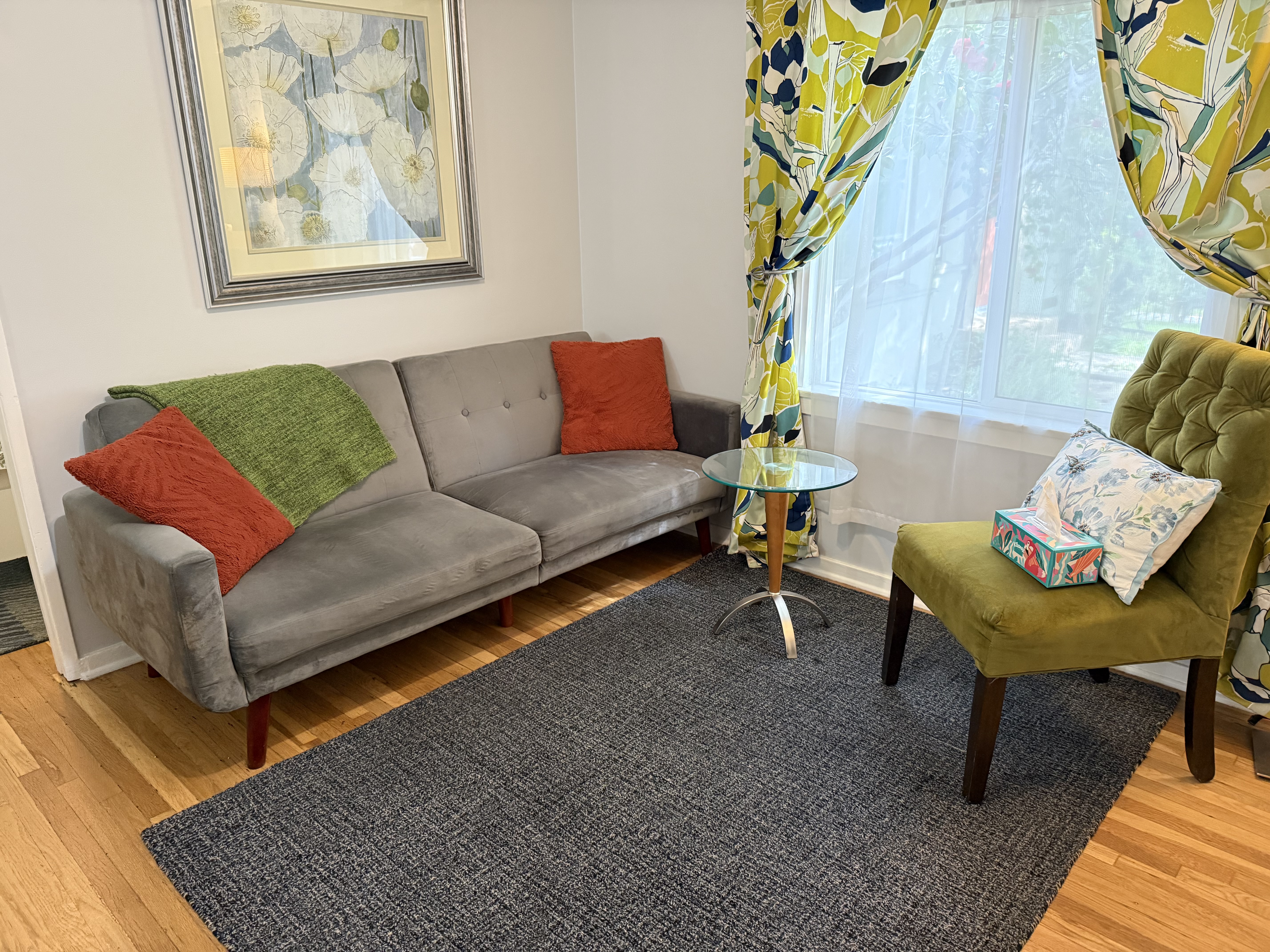 My only complaint would be that the "couch" in the living room is a very uncomfortable futon. I know that it's an attempt to create another sleeping area, but maybe invest in a more comfortable mattress? I was recovering from surgery during my stay, so spent most of my time sitting there, and it was not at all comfortable!- Victoria B. from Alexandria, Posted: 08/13/2017