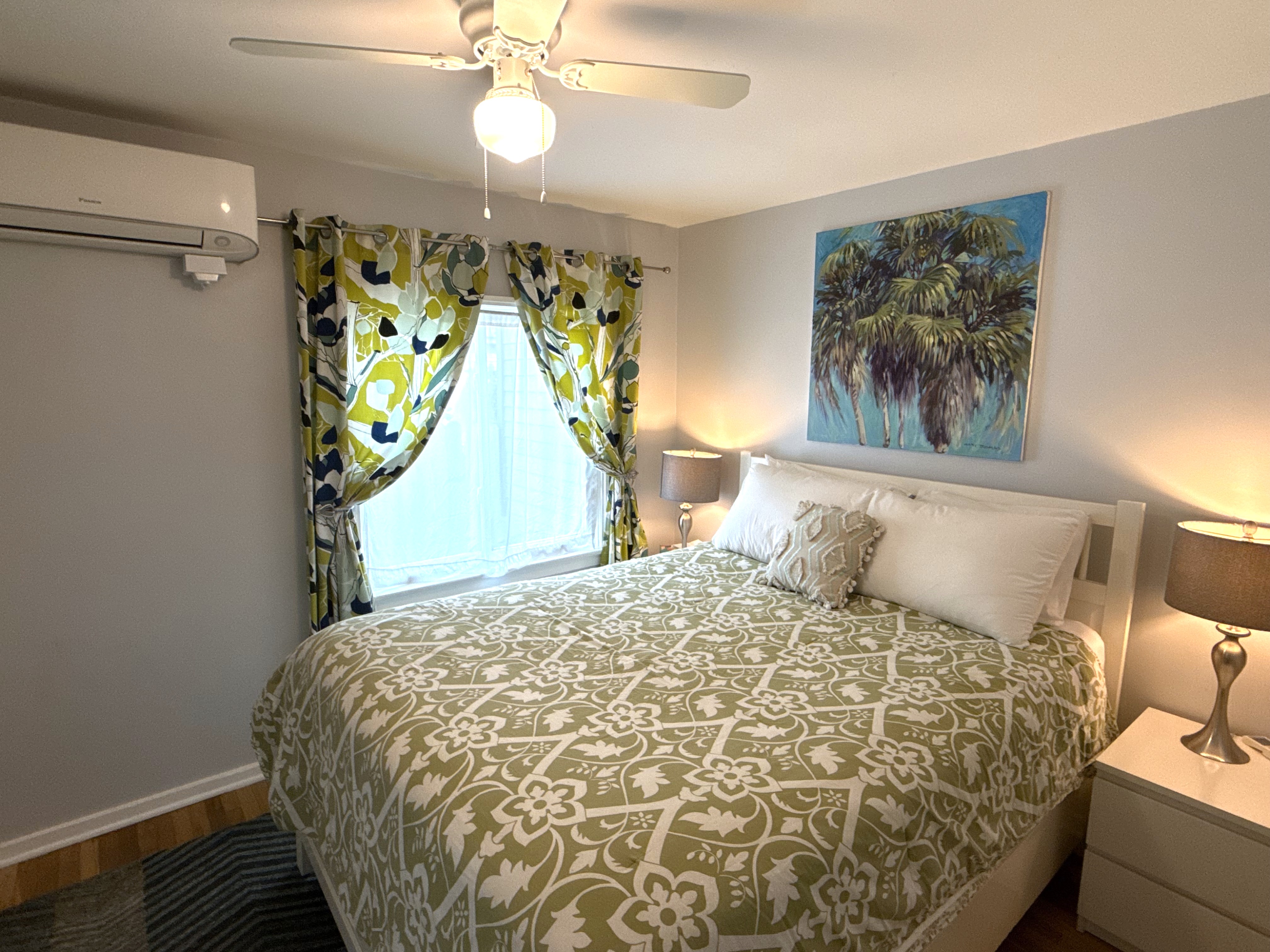 My only real quibble was with the heating system. During my two-month stay, the temperatures were in the high 30s and low 40s at night. There was only one HVAC unit in the apartment and it was in the bedroom. So the kitchen and living room/dining room and bathroom would get quite cold. The ceiling fan in the bedroom helped push some heat into the other rooms.- Christina E. from Eatontown, Posted: 04/20/2023