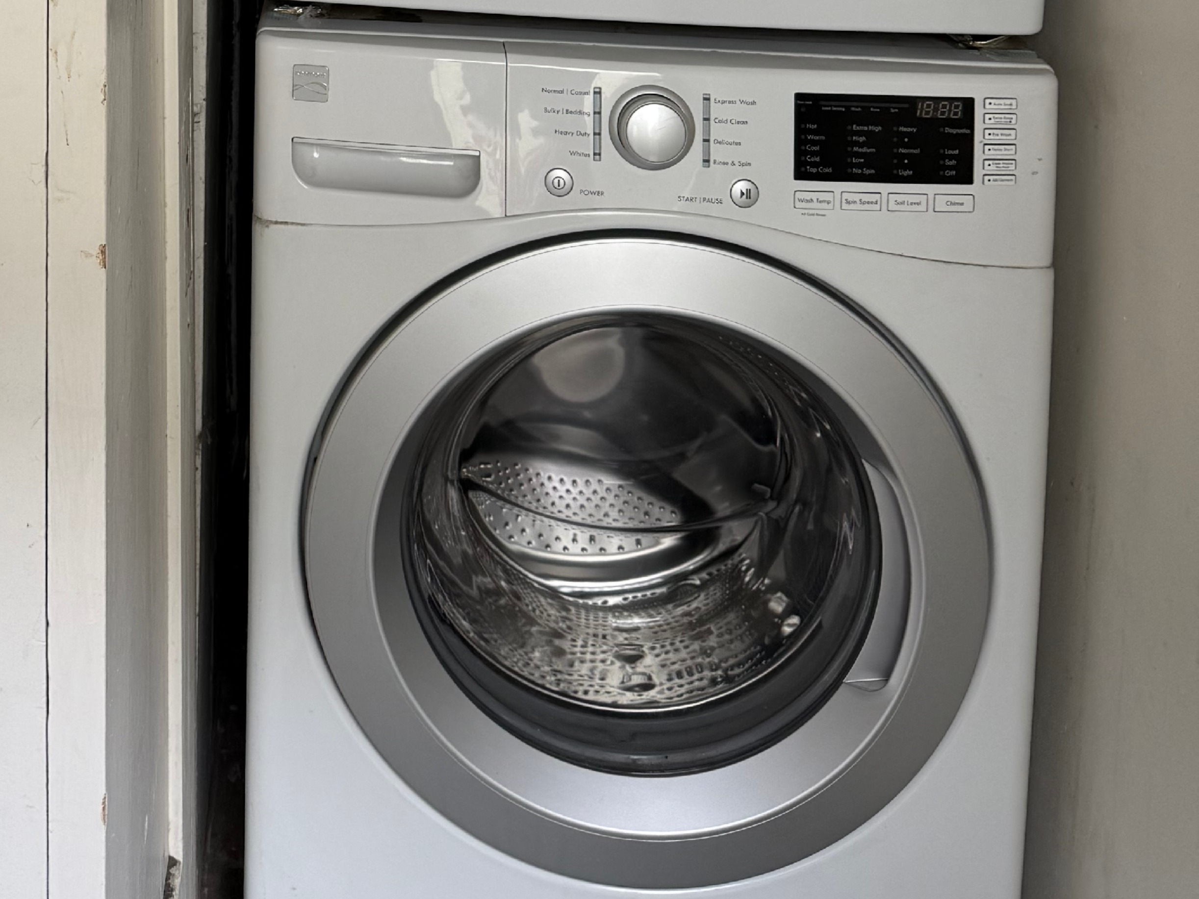 The washer & dryer are outside on the patio. Being from Oregon, this was unimaginable to me. The units are nice and worked very well when I did a load of laundry.